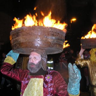 31 December – A version of burning out the old year, locals walk down the street with blazing tar barrels on their heads. Some of these are then thrown to light a bonfire.